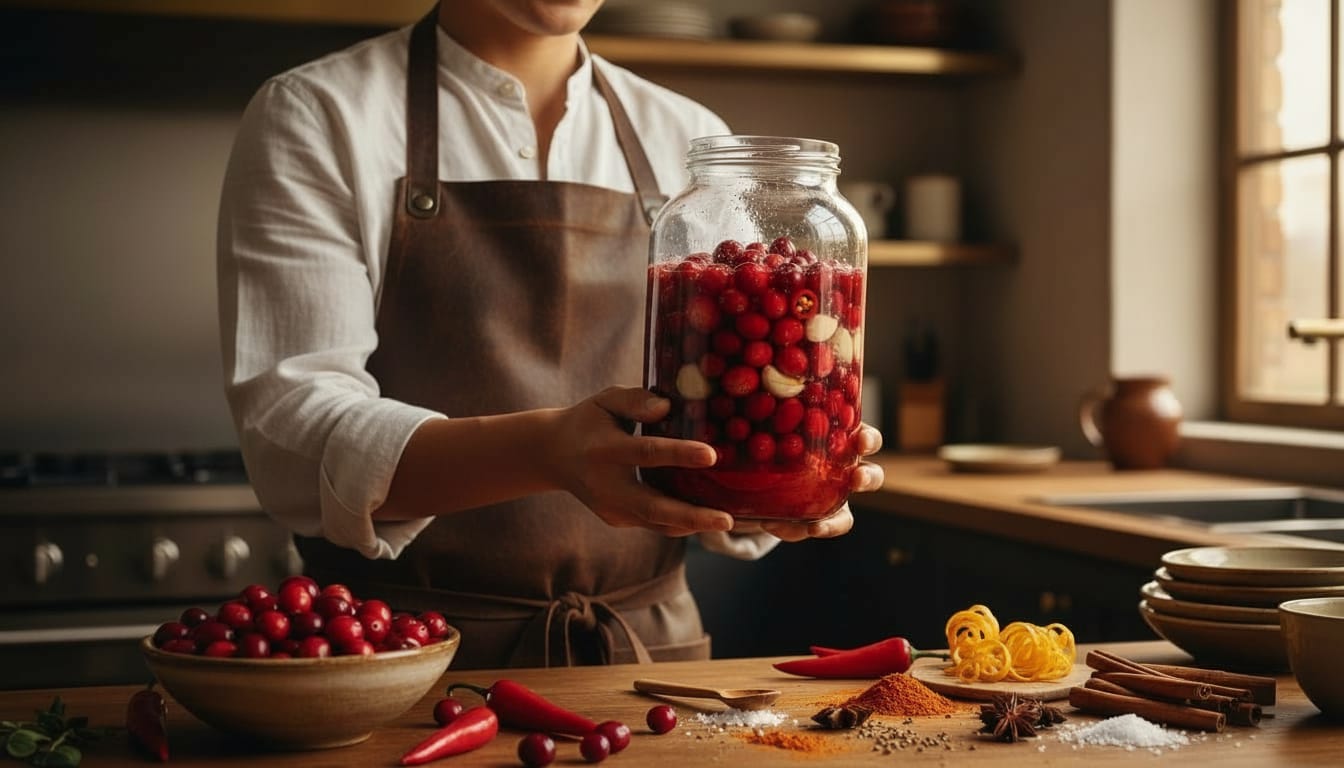 Proces izrade domaćeg fermentiranog umaka od brusnica tako je jednostavan. Nema razloga za strah od riječi “fermentirano“, to je jednostavno metoda konzerviranja koja postoji stoljećima. Slijedeći ove osnovne korake, imat ćete zdrav i ukusan ferment za samo dva dana.