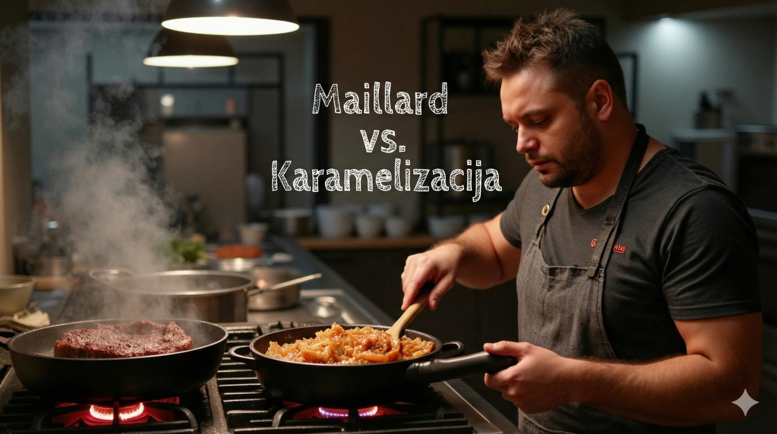 Razumijevanje razlike između ova dva procesa je ono kaj odvaja kuhara koji slijepo prati recept od onoga koji razumije namirnicu. Kada znate da Maillard traži proteine i suhoću, a karamelizacija traži šećer i strpljenje, prestajete se boriti s tavom i počinjete njome manipulirati. Znate da dodavanjem šećera u marinadu za steak riskirate da on izgori (karamelizira/ugljenizira) prije nego kaj se meso zapravo ispeče (Maillard). Znate da onaj savršeni rižoto od luka zahtijeva obje faze, prvo Maillardovu “mesnatost” za dubinu, a zatim karamelizaciju za slatku završnicu.