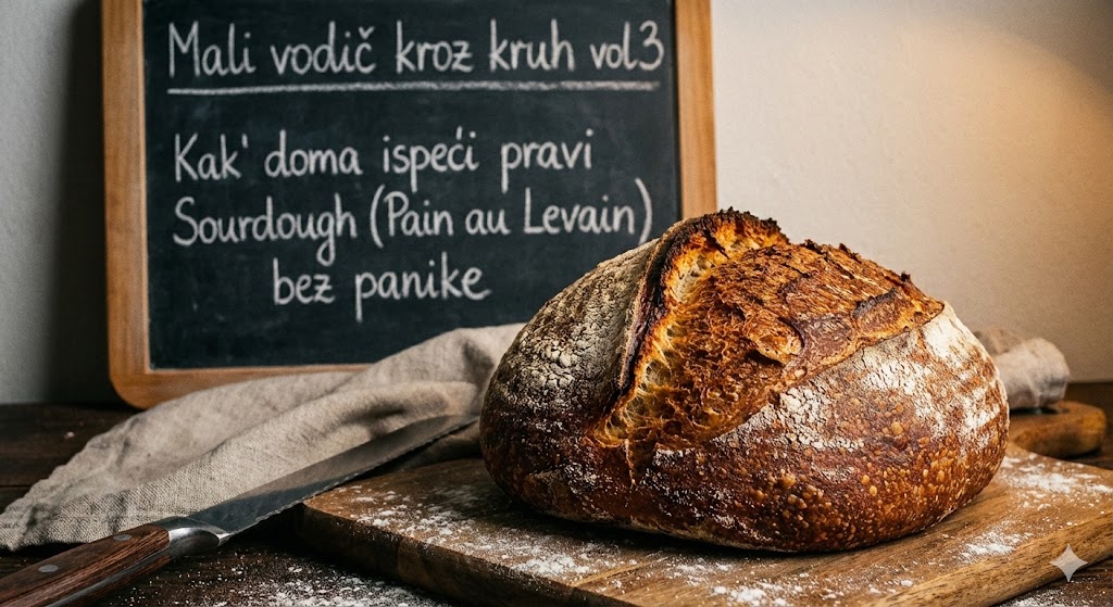 Postoji valjda tisuću načina i recepata za sourdough (kruh od kiselog tijesta). I znam, na prvu sve to zvuči i izgleda zastrašujuće. Ali ne mora biti. U duhu ovog našeg malog vodiča kroz kruh, složio sam vam konkretan putokaz za osnovni “pain au levain” to je ona klasična, višenamjenska štruca koju viđate po svakoj boljoj europskoj pekarnici i koja vam iskače po Instagram feedu.