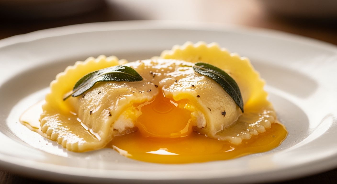 Moj recept zahtijeva osnovni nadjev od ricotte, koji doista dopušta da okus i tekstura žumanjka zablistaju. Poslužujem raviole od žumanjaka u umaku od maslaca pomiješanog sa slanom pancetom, sa završnom kapljicom soka od limuna i posipom svježeg peršina za balans svježine. Pa da, nevjerojatno je dekadentno, zbog čega preporučujem da napravite samo dva ili tri po osobi. Neće vas nužno zasititi, ali također neće ostaviti osjećaj težine; Predlažem da obrok nadopunite svježom salatom u svijetlom, kiselkastom preljevu.