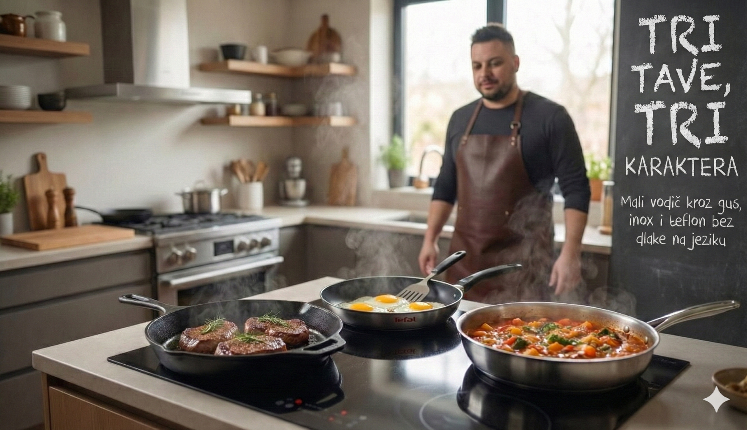 Zato sam ovdje da demistificiramo stvari. Ne morate imati kuhinju od 150 kvadrata ni opremu restorana s Michelinovom zvjezdicom, ali morate znati osnove. Postoje tri glavna igrača u svijetu tava: Gus (Cast Iron), Inox (Stainless Steel) i Teflon (Non-stick).