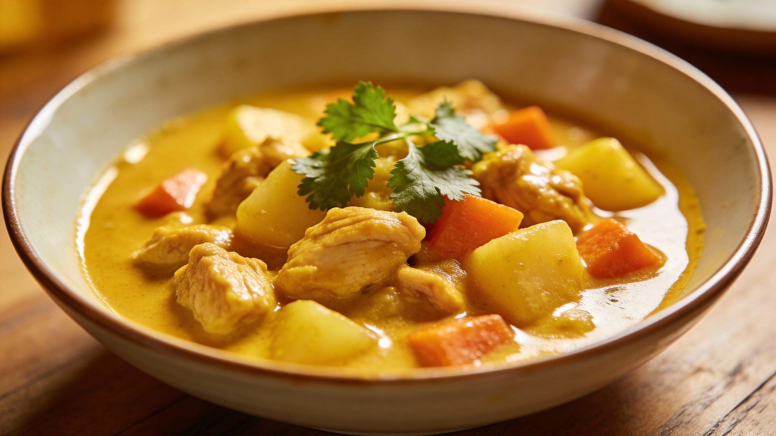 Malo podsjeća na blagi, ali jako začinjeni curry na bazi kokosa koji se obično navodi kao “žuti curry” na jelovnicima tajlandskih restorana. To je jelo koje kombinira tajlandske curry tehnike s toplim profilom začina južnoazijskih curryja.
